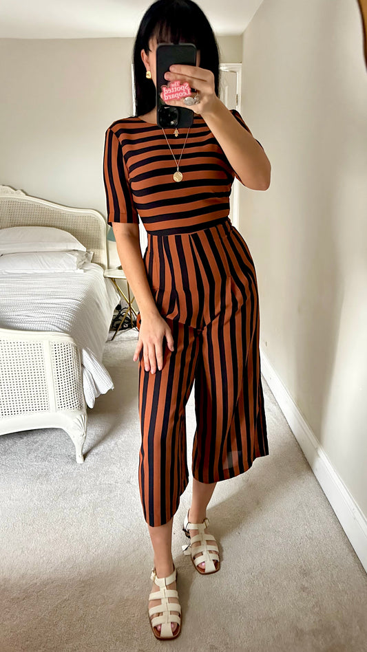 Traffic People brown black stripe cropped jumpsuit playsuit extra small UK 6-8 vgc