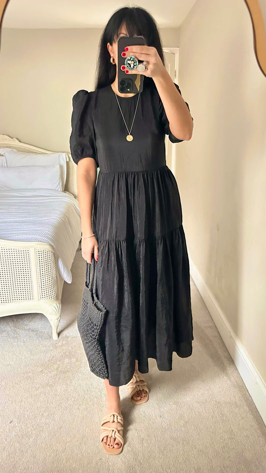 & Other stories black tiered midi maxi dress small S UK 8 vgc