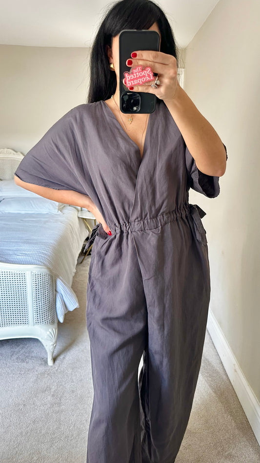 COS black charcoal grey linen blend jumpsuit playsuite small medium UK 8 10 12