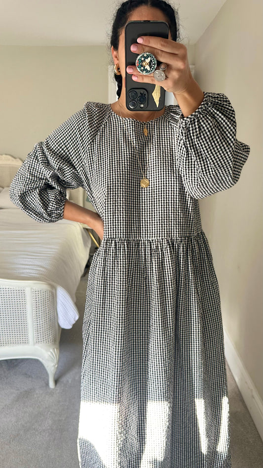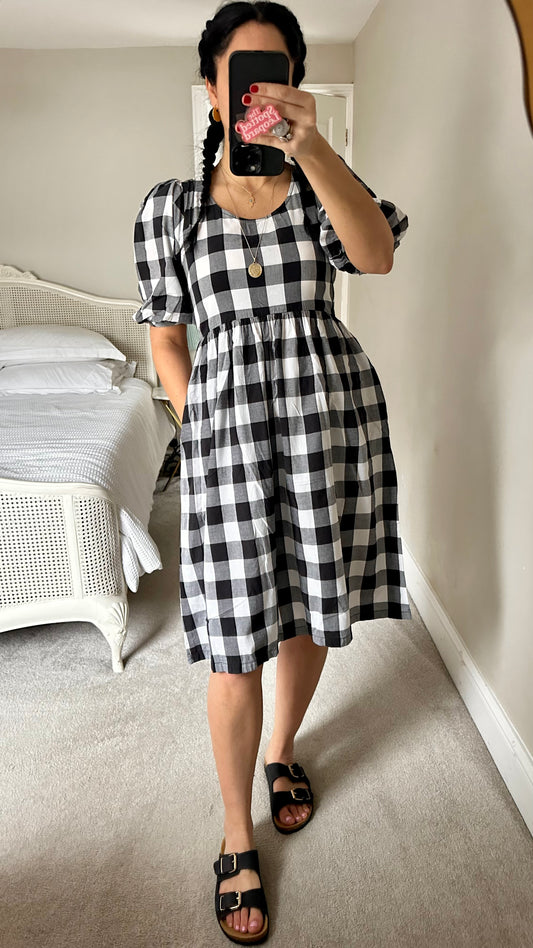 Nobody’s Child black white gingham check dress large UK 14 vgc
