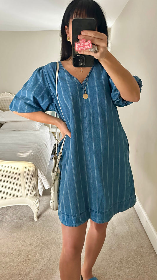 Oliver Bonas light blue stripe denim dress short holiday medium UK 12 new bnwt