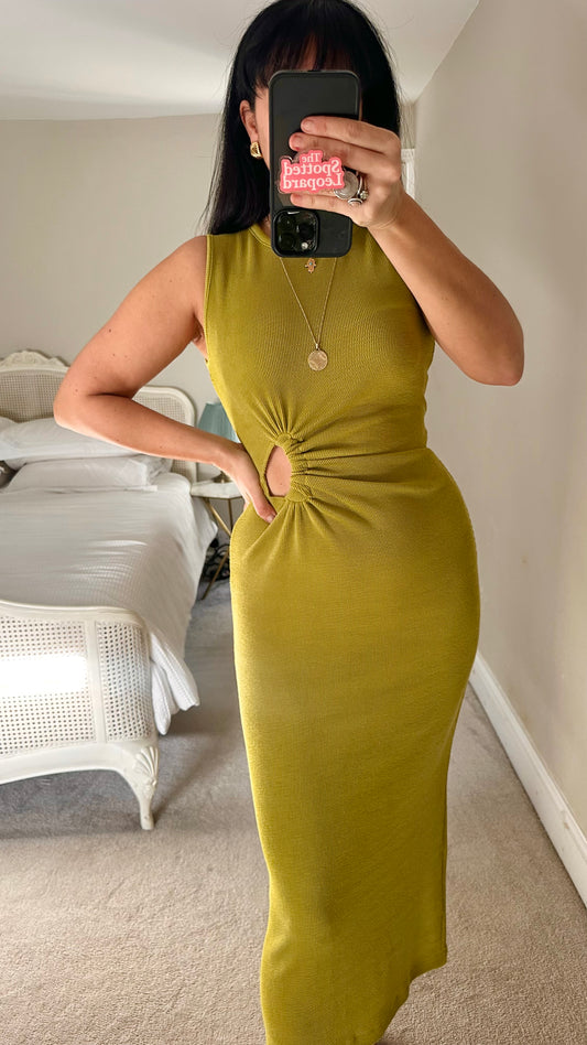 Mint Velvet acid yellow green stretch midi long dress medium UK 12 vgc