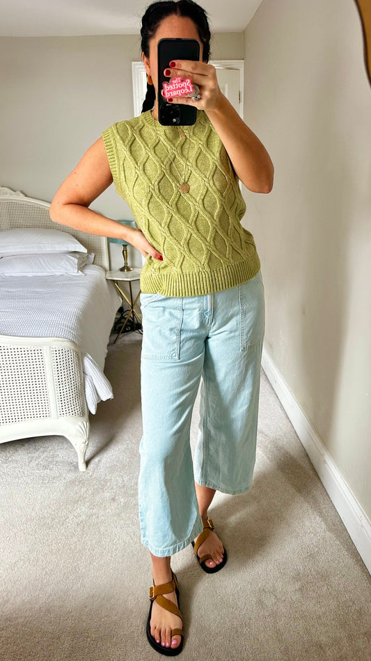 Marks & Spencer M&S sage green knitted vest top tank small UK 10 vgc